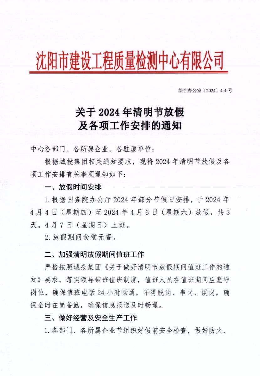 關(guān)于做好2024年清明節(jié)放假期間值班工作的通知